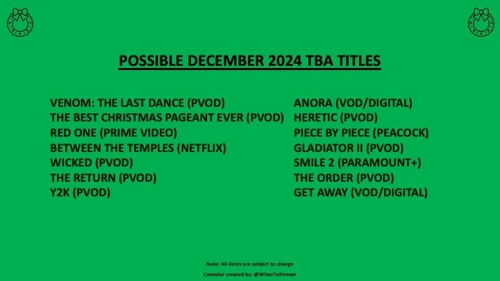 And finally, here are the titles not yet announced that we think might still begin streaming in December 2024: